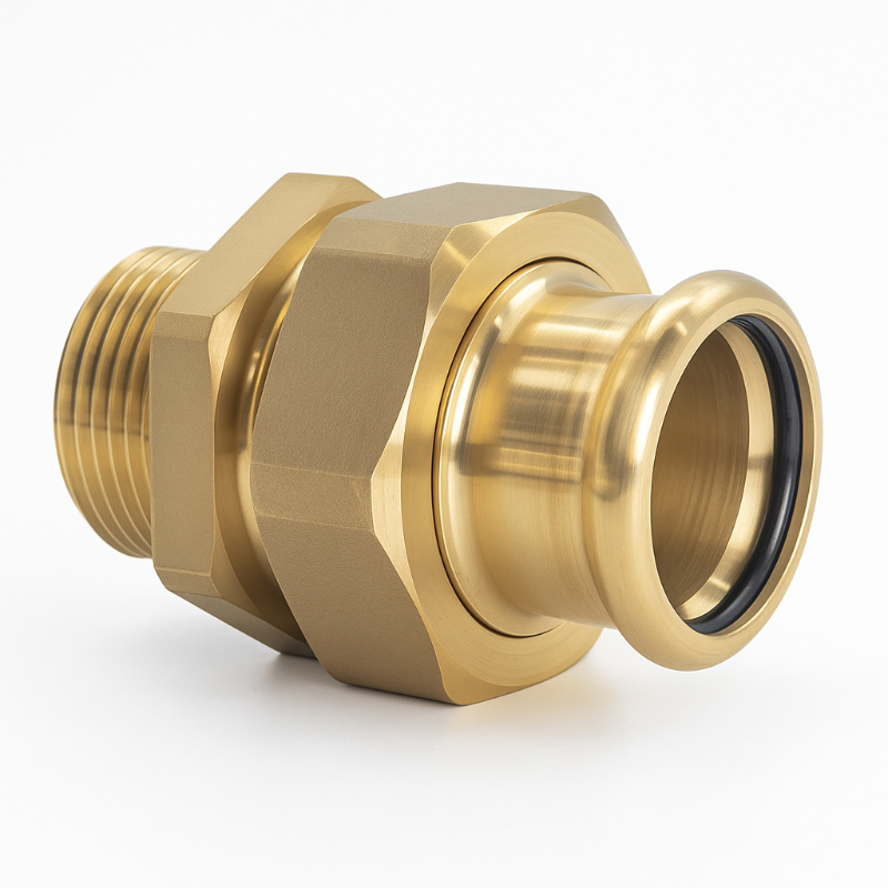 Kudos Trading M Press copper press fitting male union for strong, leak-free pipe connections in heating and plumbing systems.