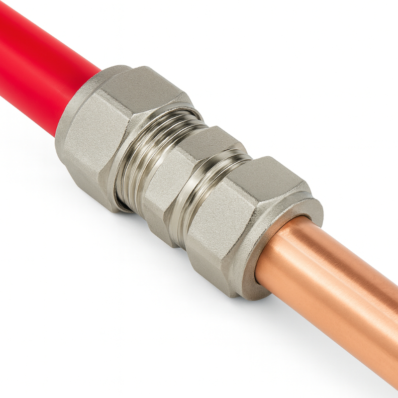 This coupling seamlessly connects 16mm underfloor heating pipes to 15mm copper pipes, bridging the gap between modern underfloor heating systems and traditional copper pipe infrastructure. Its design ensures a tight, secure fit, minimizing the risk of leaks and ensuring optimal water flow.