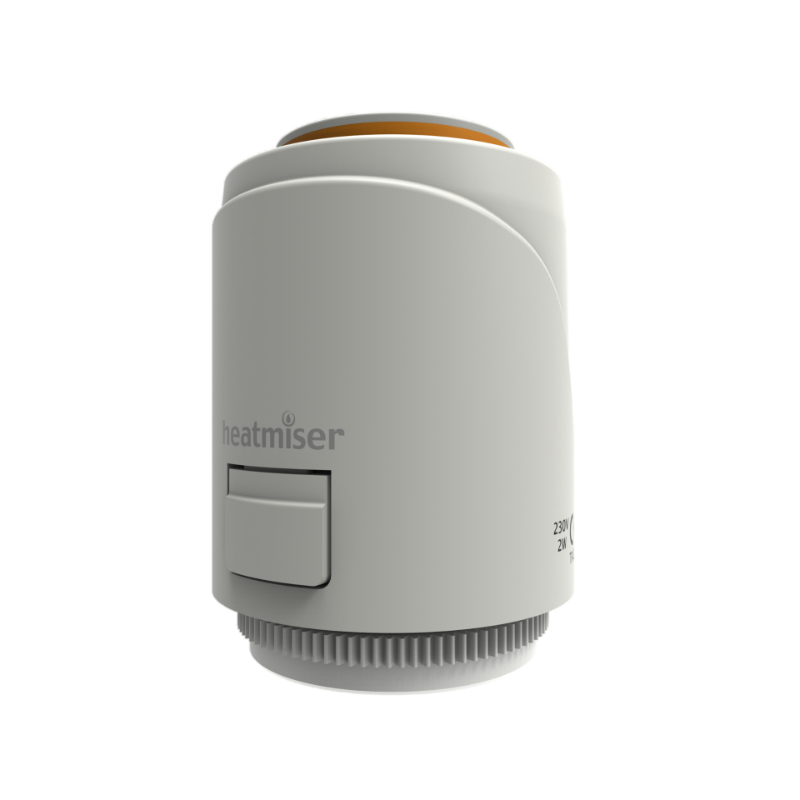 The Heatmiser 230V actuator is a reliable thermal actuator designed for precise control of water underfloor heating systems. Installed directly onto the manifold, it regulates water flow to individual heating loops based on thermostat demand. As a result, it ensures accurate temperature control and consistent comfort in every zone.