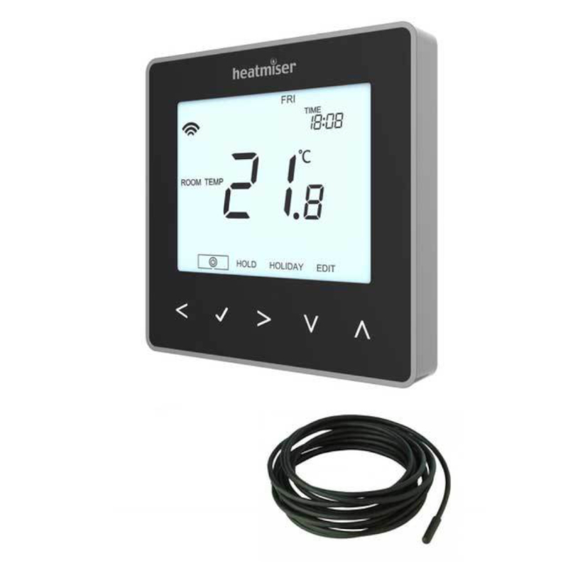 Heatmiser Neo-E Electric Underfloor HeatingThermostat 16Amp with Floor Sensor Black