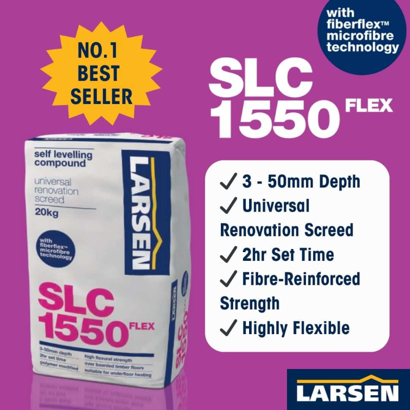Larsens 1550 levelling compound is a high-performance, flexible self levelling compound designed to create smooth, even subfloors before final floor finishes. Known as SLC 1550 Flex, it provides excellent adhesion, fast setting times, and reliable strength for professional flooring installations.