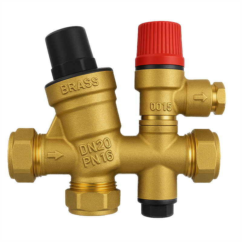 A combination valve is designed to streamline the design of your unvented cylinder and make maintenance easier by combining the functions of: Pressure Reduction Valve, Check Valve, Expansion Valve, Line Strainer